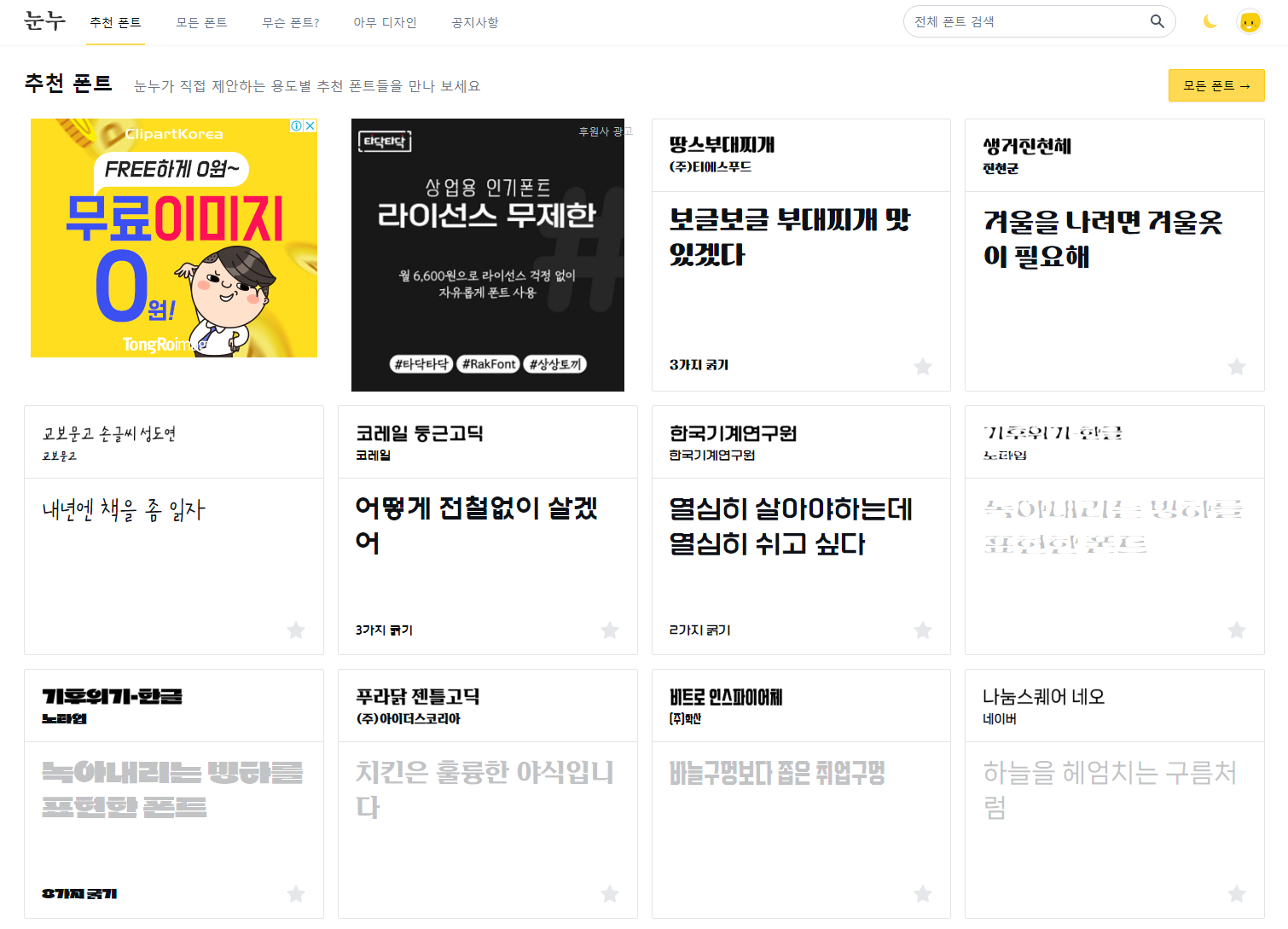 이런 구조로 되어있어서 많은 폰트를 찾기 쉽고 직관적으로 어떤 폰트인지 볼 수 있어서 사용하기 참 좋습니다.