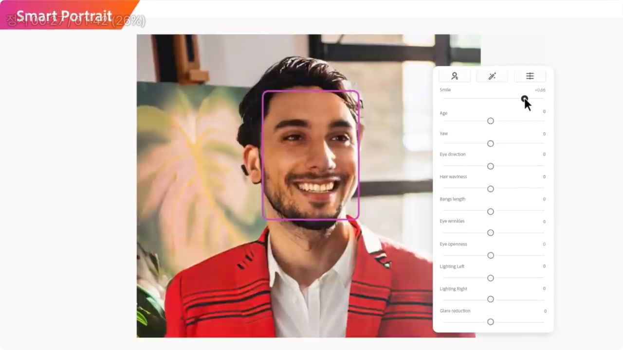 Smart Portrait는 스마트 인물 보정으로 얼굴 표정이나 눈 코 입을 디테일하게 보정할 수 있는 기능으로 보입니다.