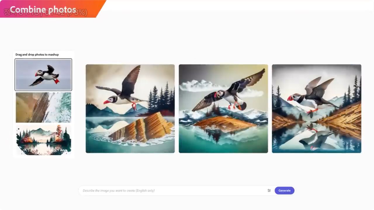 다음은 여러 장의 사진을 조합하여 새로운 느낌의 사진을 합성하는 것으로 보입니다. 원하는 스타일에서 단어를 추가적으로 입력하여 디테일하게 이미지를 수정해나갈 수 있을 것으로 보여집니다.