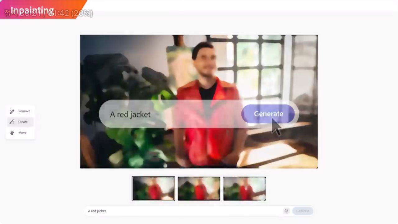 영상을 보면 남성의 상의를 지우고 붉은색 자켓을 명령어로 생성하여 입히는 모습을 볼 수 있습니다.