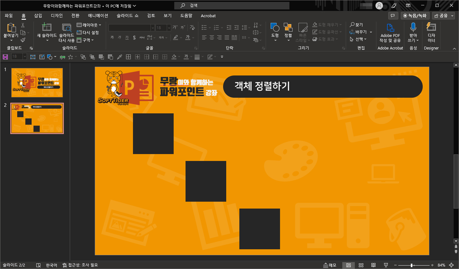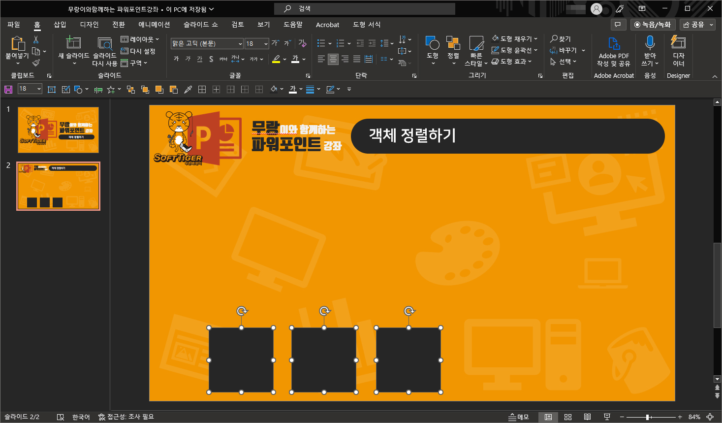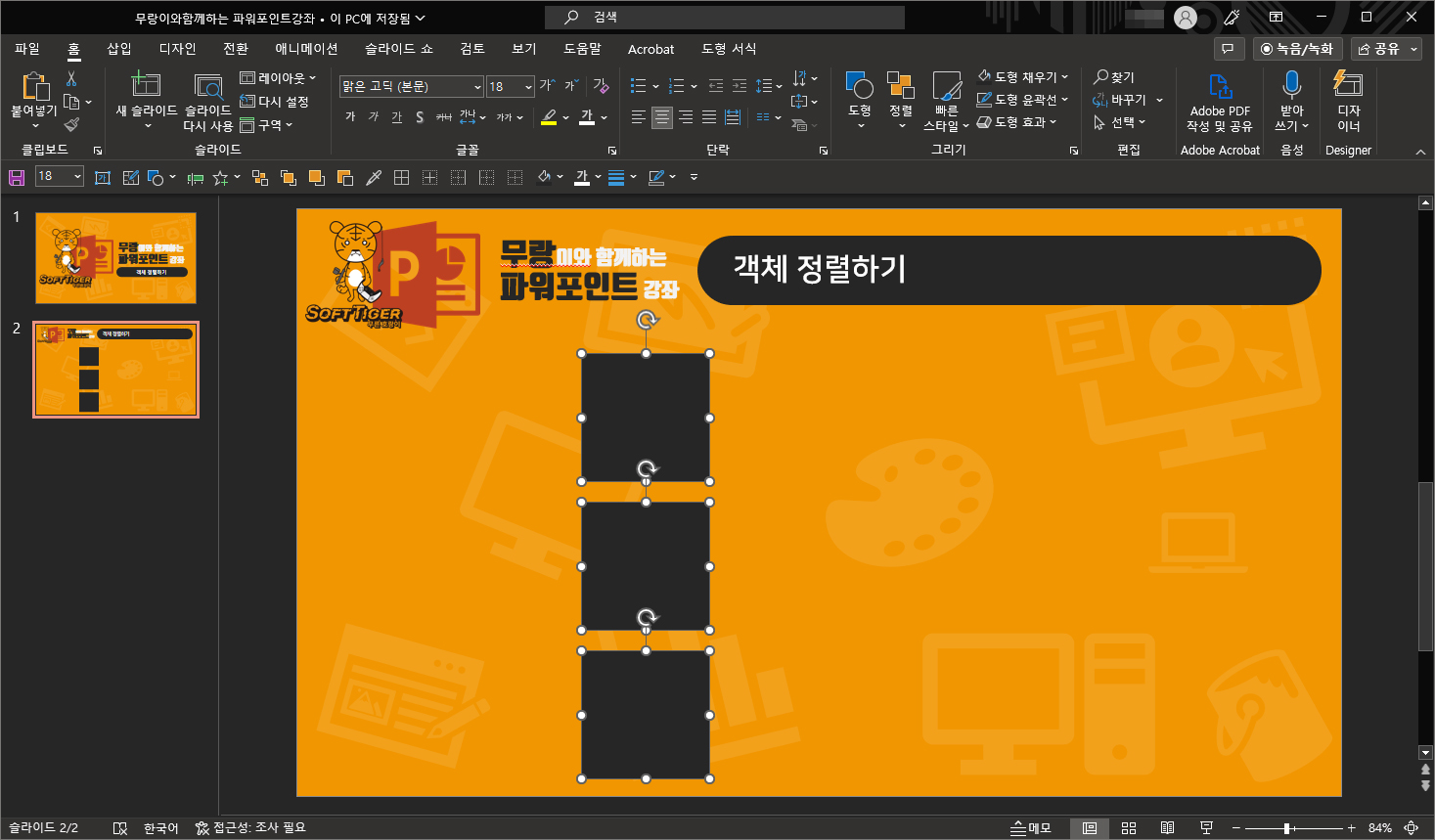 안녕하세요. 오늘의 파워포인트 강좌 내용은 객체 정렬하기 입니다.