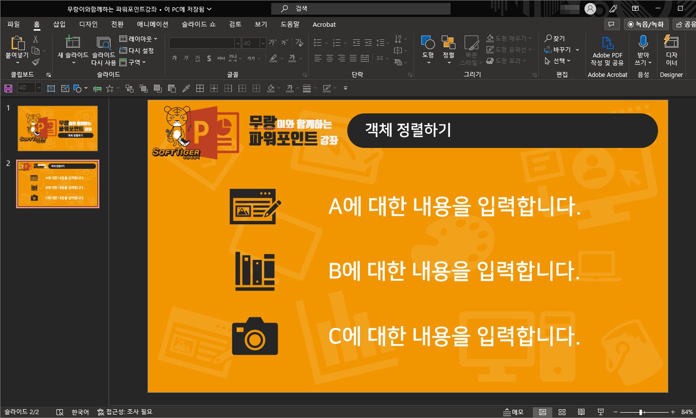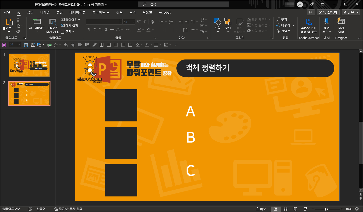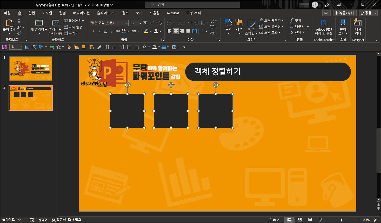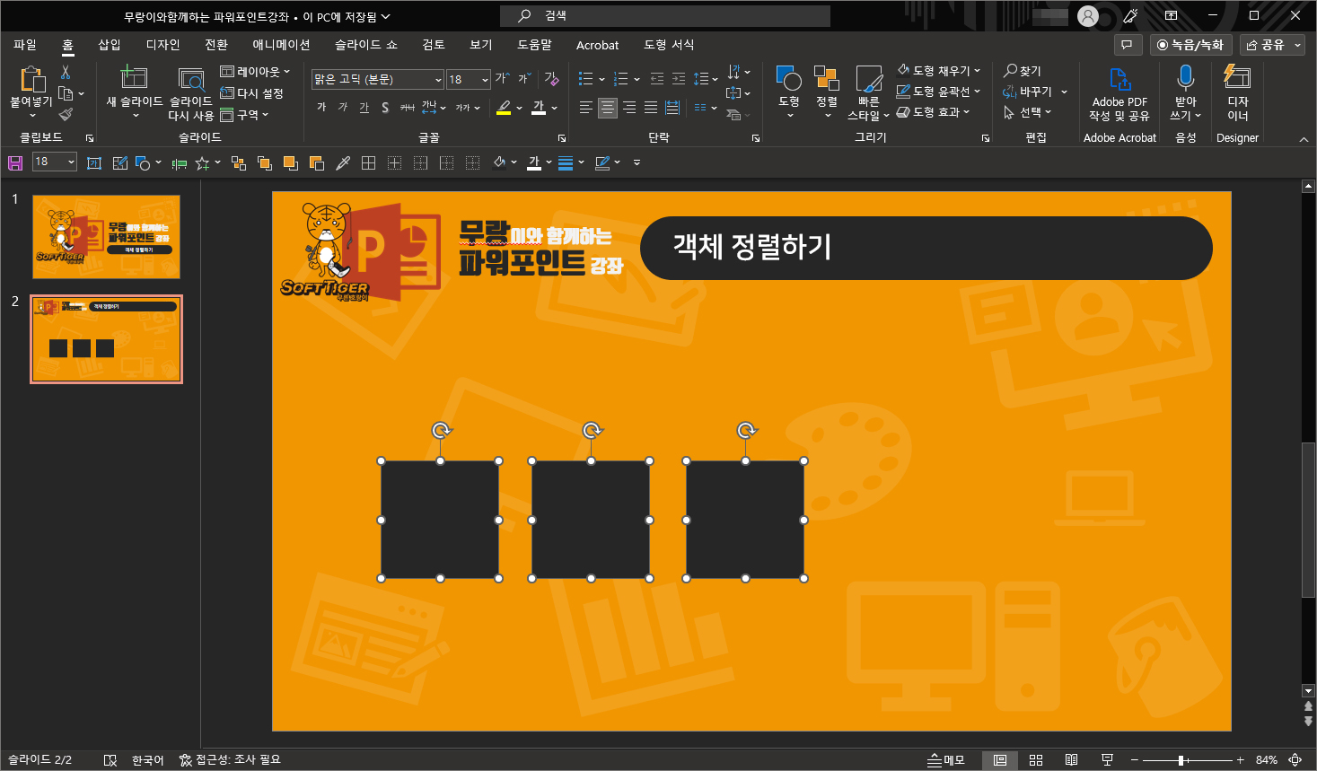 안녕하세요. 오늘의 파워포인트 강좌 내용은 객체 정렬하기 입니다.