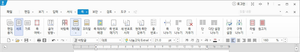 1. 메뉴에서 쪽 → 머리말 선택하기