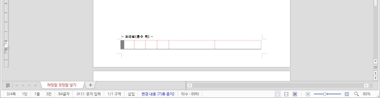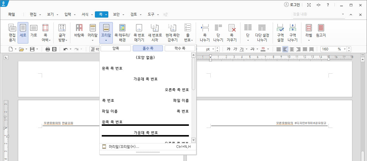 저는 머리말처럼 꼬리말도 꾸미기 위해 홀수 쪽, 짝수 쪽을 나누어해 보겠습니다.