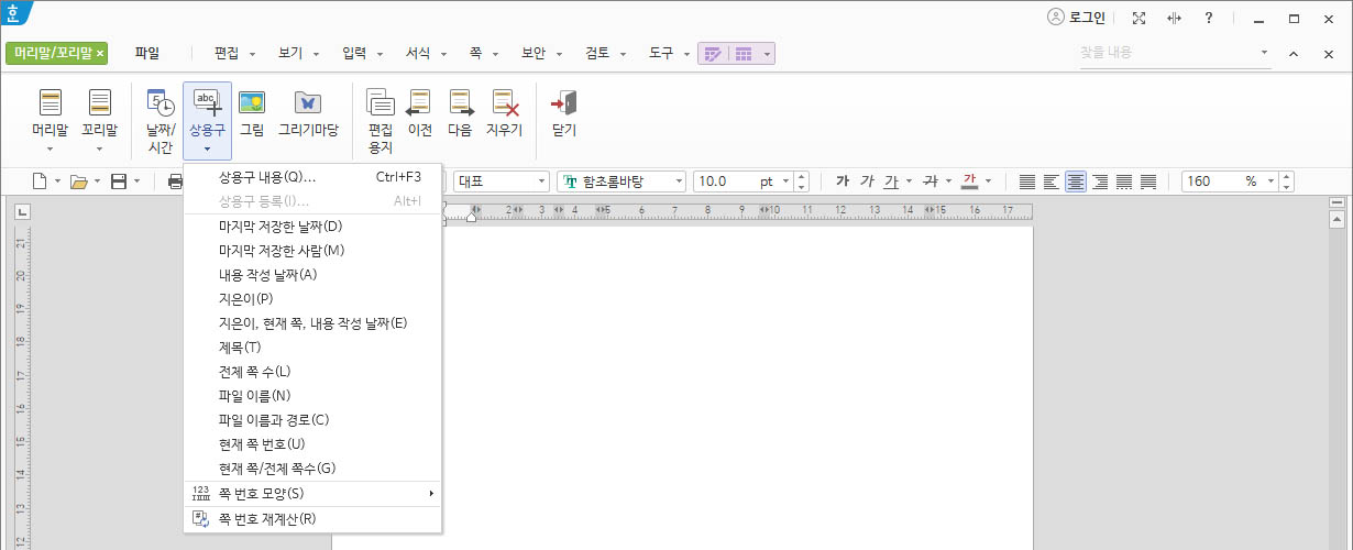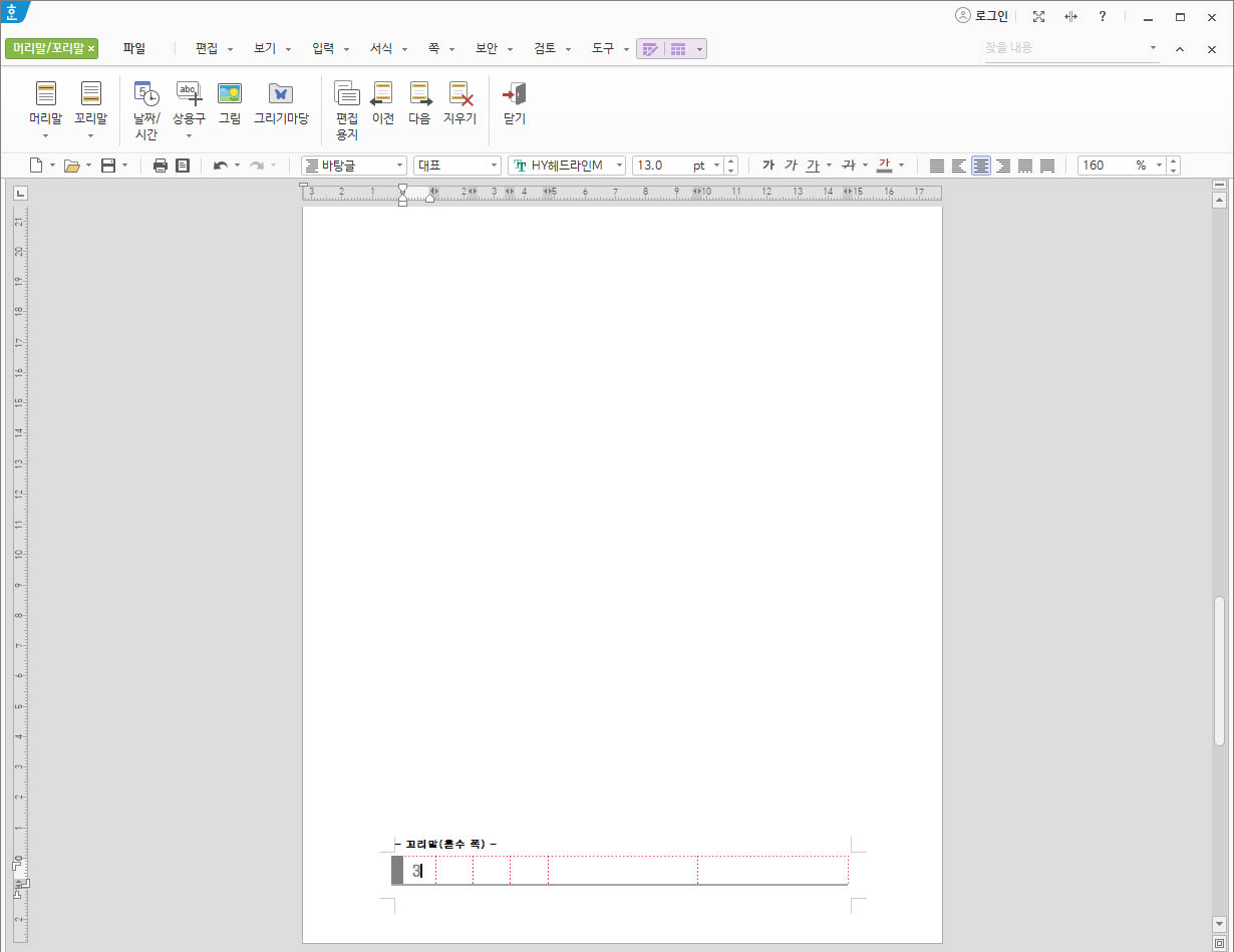 오늘은 한글에서 머리말, 꼬리말 그리고 원하는 위치에 쪽번호를 넣는 방법을 알려드리도록 하겠습니다.