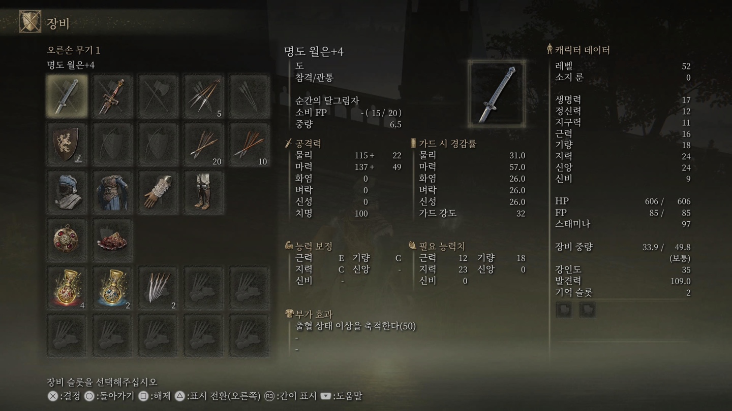명도월은과 밤불검 성능입니다. 강화는 둘 다 +4까지 강화를 한 상태입니다.