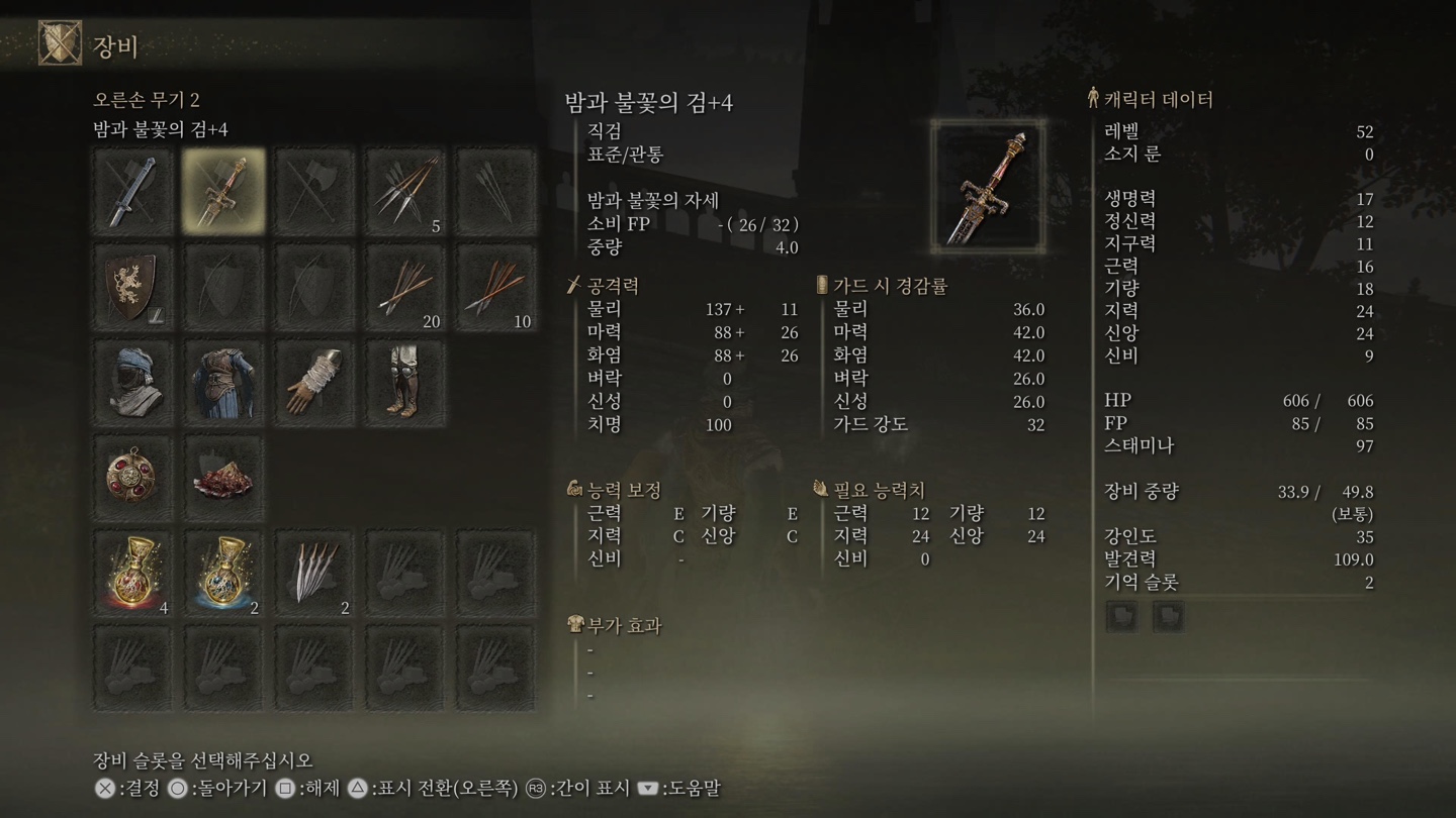 기본 공격력은 밤불검이 좋은 것 같네요.